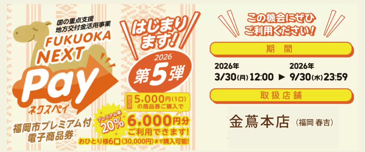 金蔦本店は 『FUKUOKA NEXT Pay』 取扱店舗です